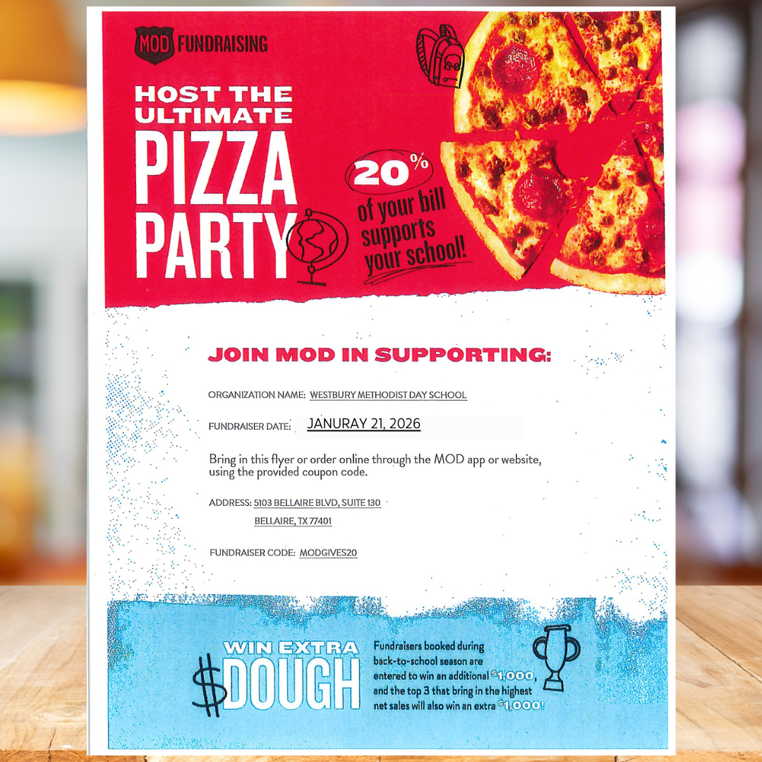 No need to worry about dinner! Thank you MOD Pizza - Bellaire for supporting our school with 20% of sales! #WMDS #preschool #SpiritDay #modpizza🍕